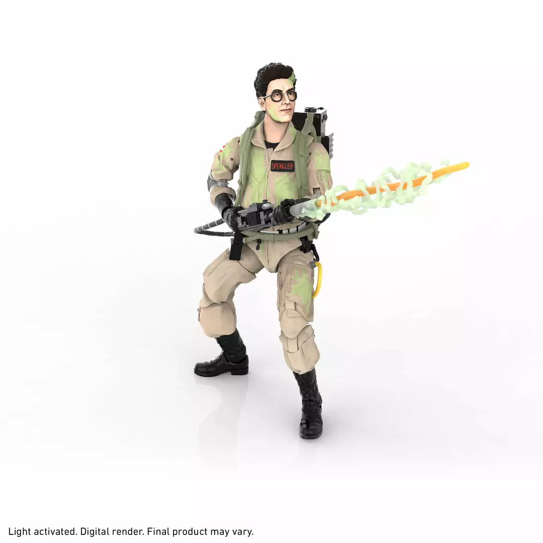 - This Egon Spengler action figure features glow-in-the-dark ecto-plasm deco for that supernatural “slimed” look. To charge glow-in-the-dark effect, place under light