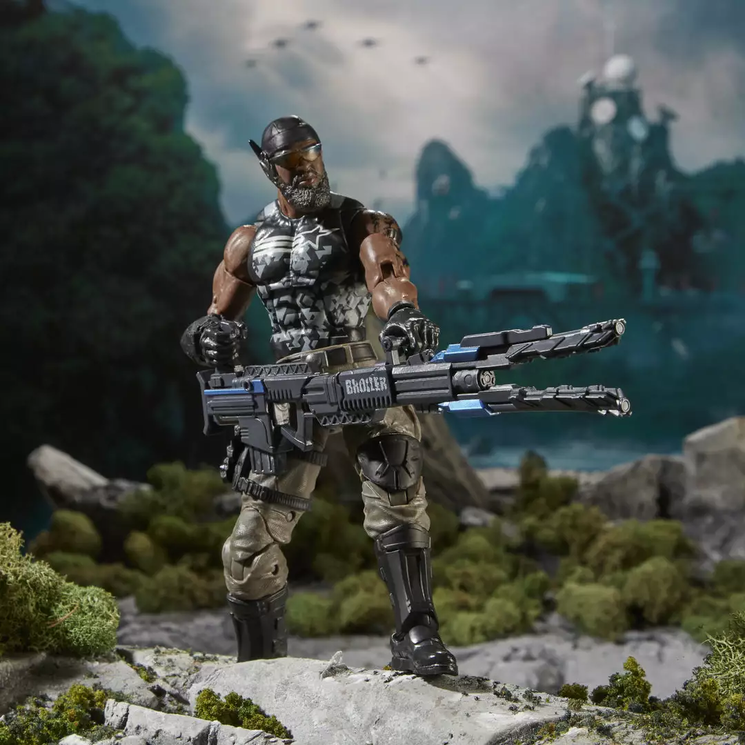 This Roadblock figure comes ready for action, with multiple points of articulation for high poseability and character-inspired accessories, including his energy weapon. And with custom artwork by Ken Lashley, the G.I. Joe Classified Series Roadblock package will make a mark on shelves.