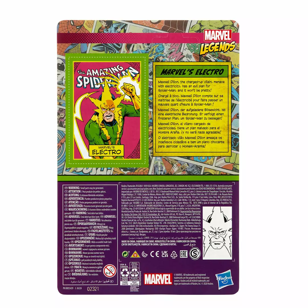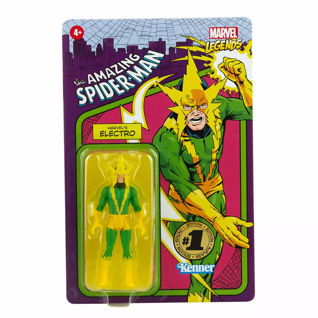 - These quality 3.75-inch Legends Series RETRO 3.75 Spiderman & Marvel’s Electro figures feature multiple points of articulation and are a great addition to any action figure collection.