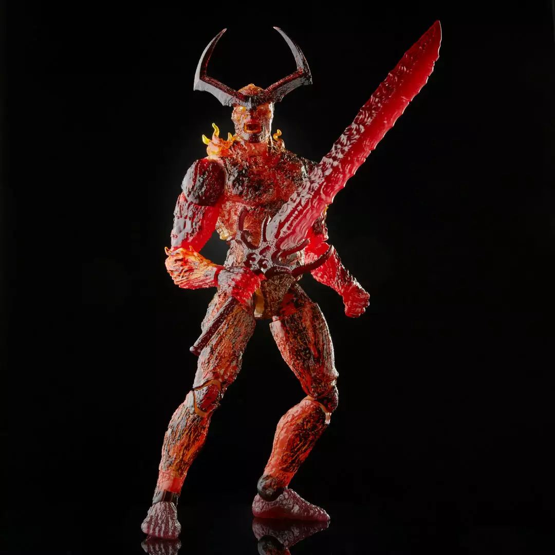 - This Surtur figure features premium design, detail, and articulation for posing and display in a Marvel collection