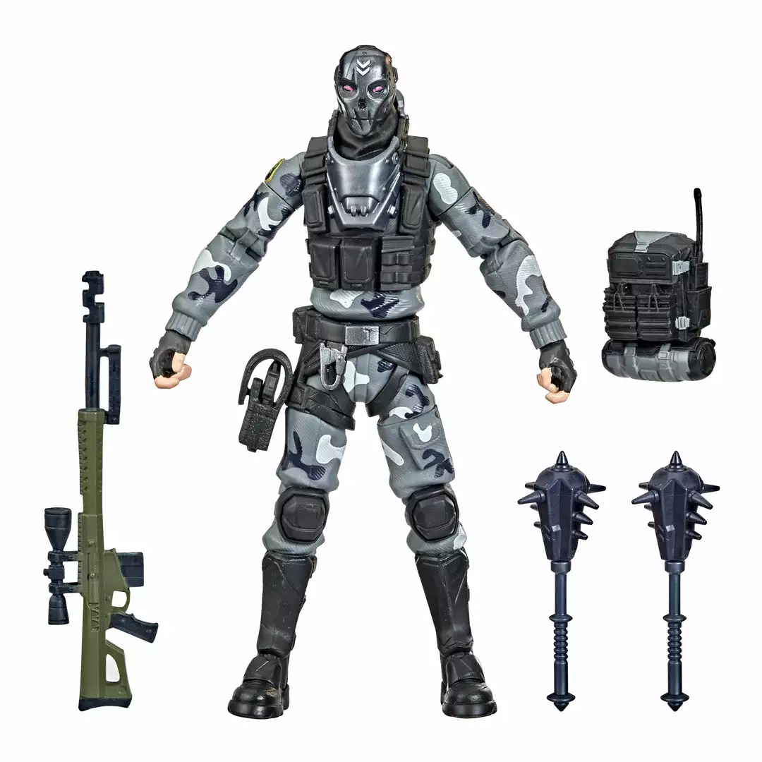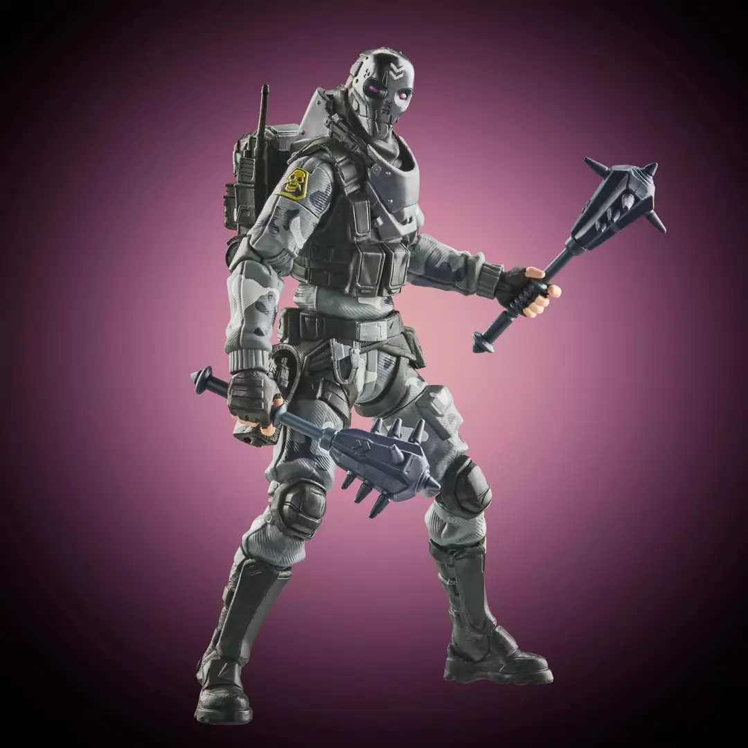 Metal Mouth drops off the Battle Bus and glides into the Victory Royale Series! This 6-inch action figure shows the popular character outfit with game-level deco and details. Comes with 2 Spiked Mace Harvesting Tools, Catalyst Back Bling, and weapon accessories. Pose out the Metal Mouth figure in an epic battle stance or bust a move in a dance emote with more than 20 points of articulation!