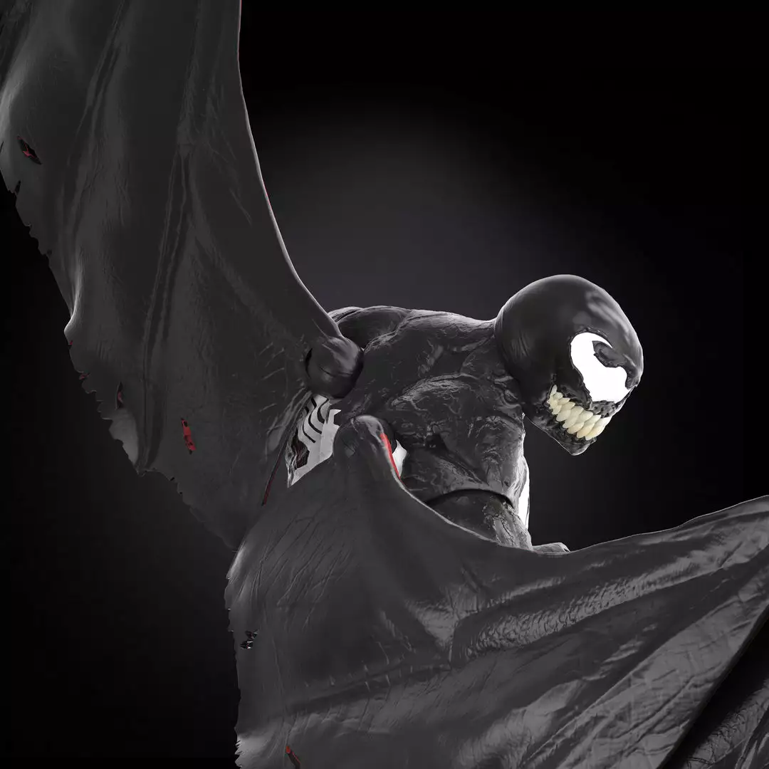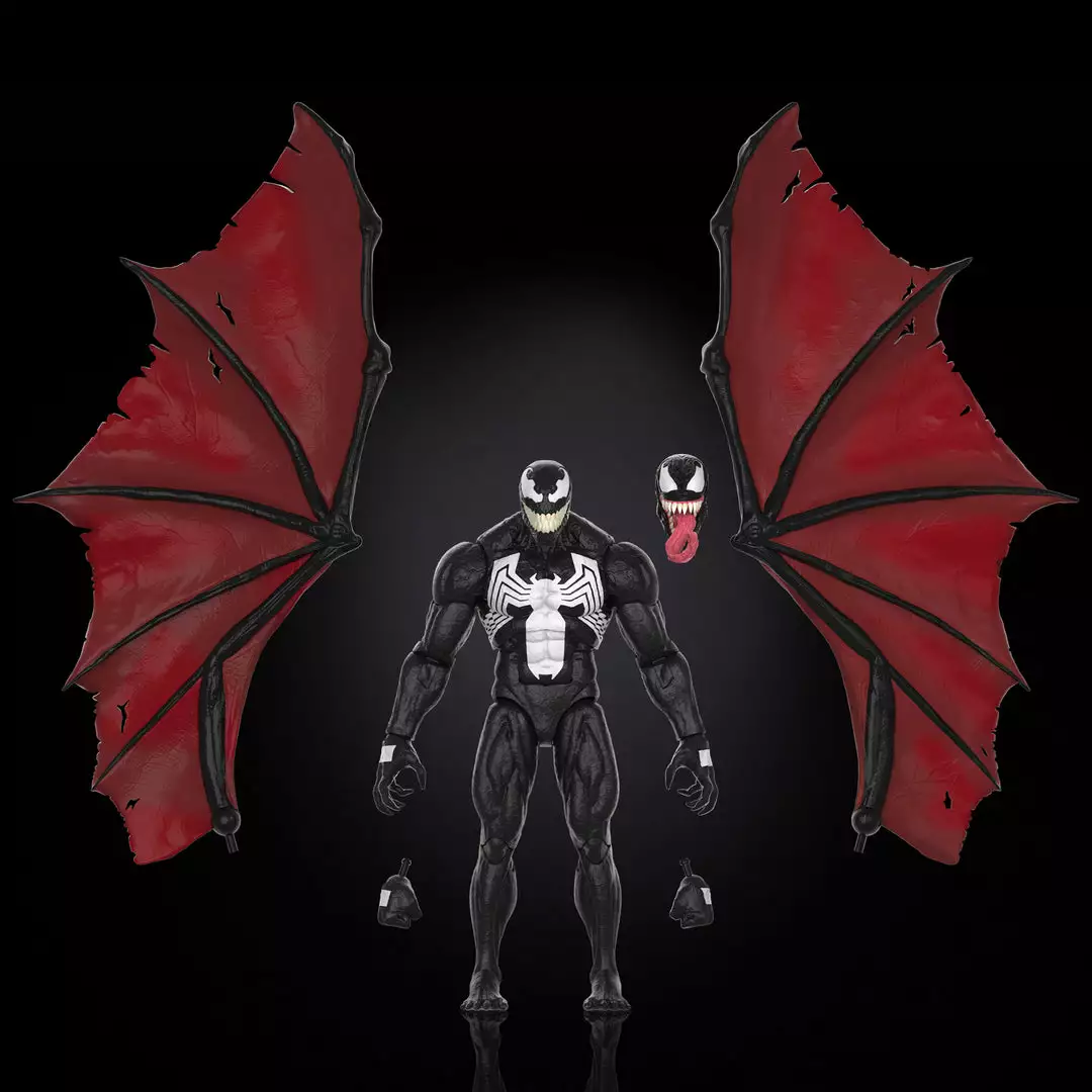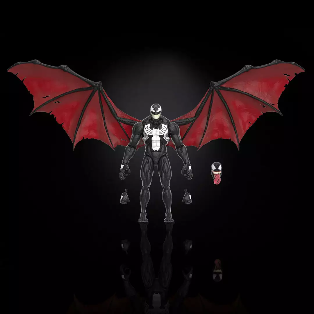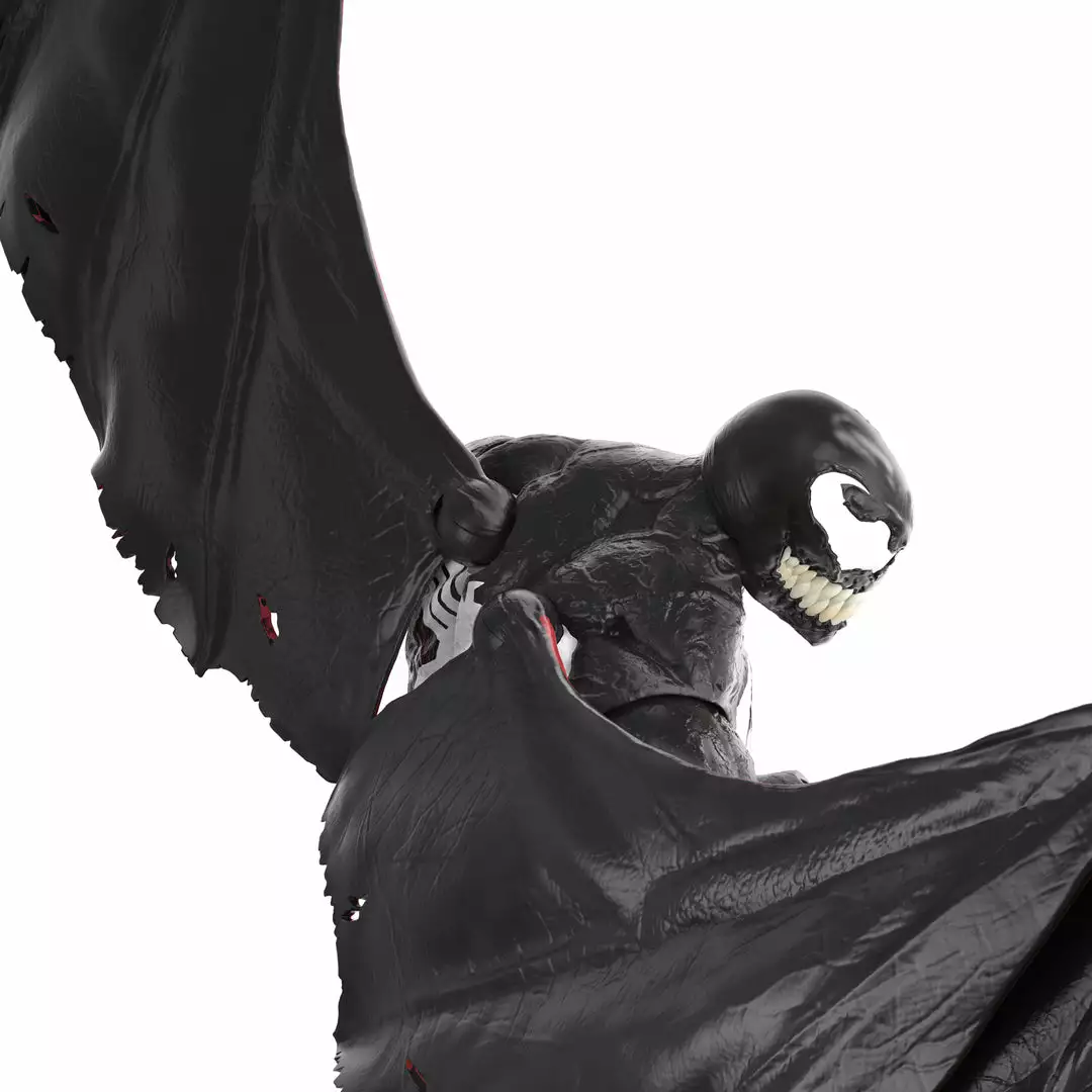 - WINGED VENOM: This 6-inch Venom figure features detailed wings as seen in the King In Black arc as well as alternate hands and head accessories!
