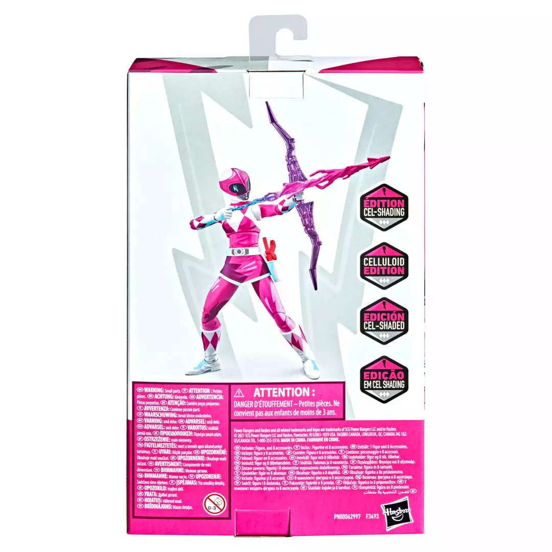 This 6-inch Lightning Collection Cel-Shaded Mighty Morphin Pink Ranger figure features premium paint and decorative details inspired by video game and comic styles, over 20 points of articulation for high poseability, Power Bow, arrow, Blade Blaster, blast effect piece, and an extra pair of hands for more ways to play or display. Go Go Power Rangers!