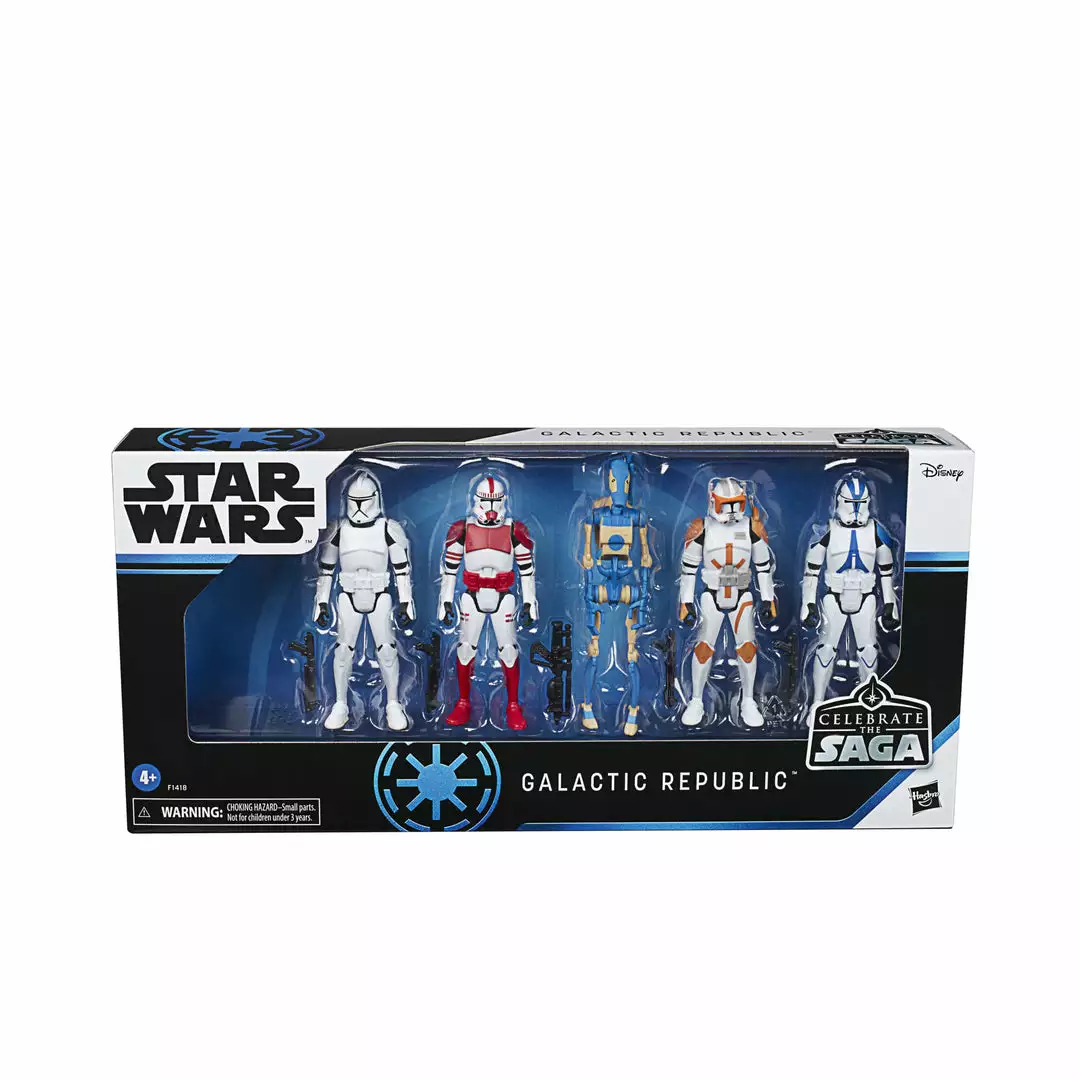 - The Star Wars Celebrate the Saga Galactic Republic pack comes with 501st Legion Trooper, Phase I Clone Trooper, Shock Trooper, Commander Cody, and OOM-10 action figures, featuring multiple points of articulation