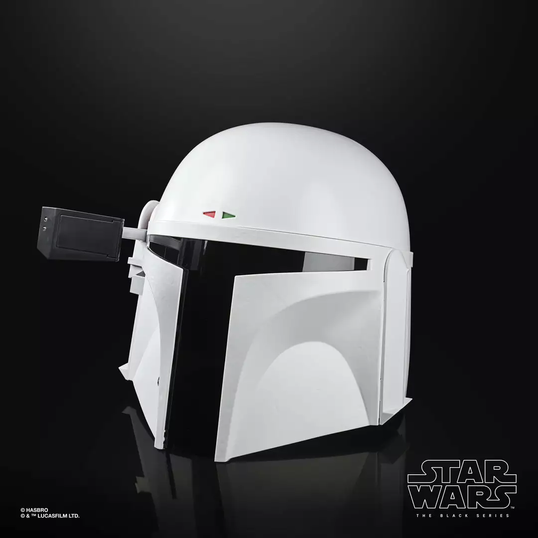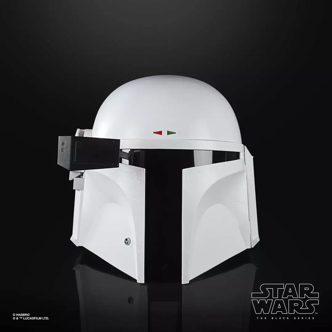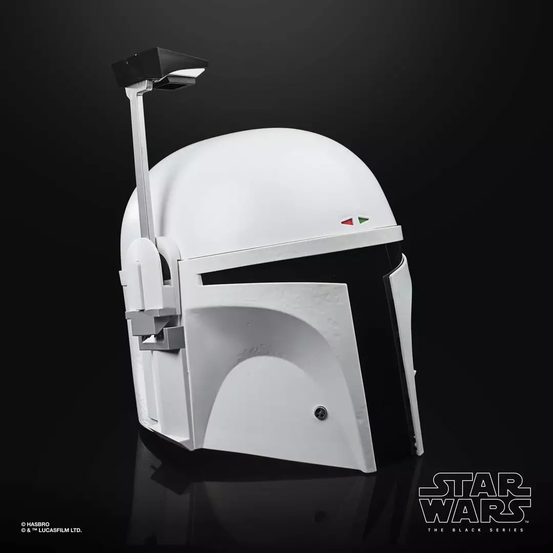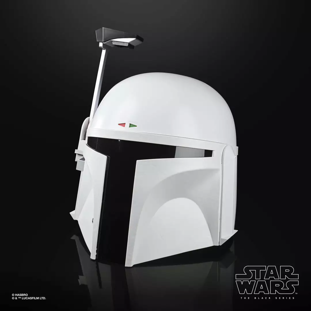 Commemorate Star Wars: The Empire Strikes Back with The Black Series Boba Fett (Prototype Armor) Premium Electronic Helmet! This roleplay item with premium detail and movie-inspired design is a great addition to any Star Wars fan’s collection. Featuring a flip-down rangefinder with flashing LED lights and an illuminated heads-up display (HUD), fans can imagine what it was like for the famous bounty hunter to suit up for galactic action in his all-white “Super Strormtrooper” armor!