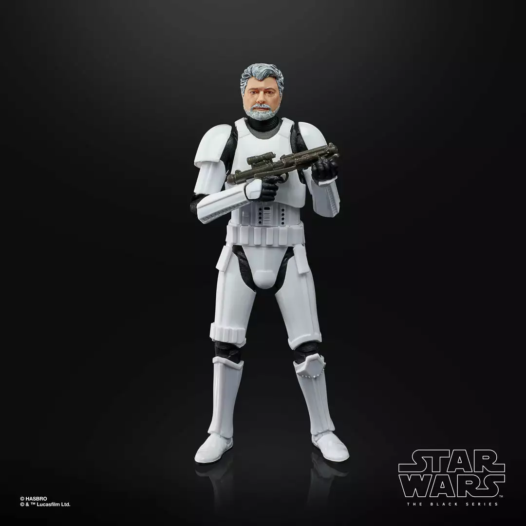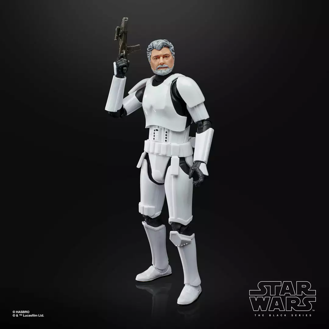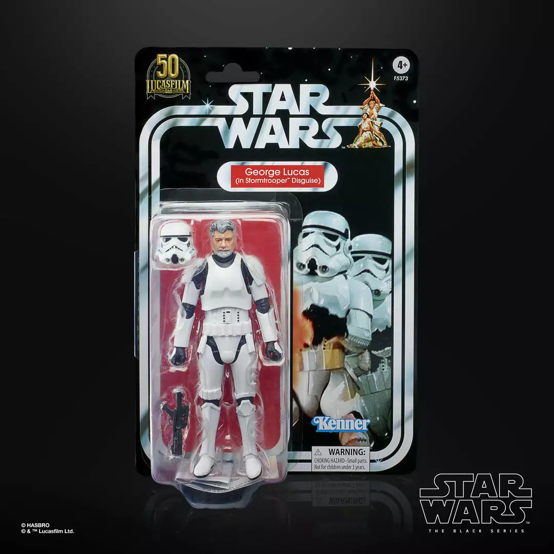 The 6-inch-scale Black Series figure is detailed to look like the George Lucas if he was wearing a Stormtrooper Disguise, featuring premium detail and multiple points of articulation.