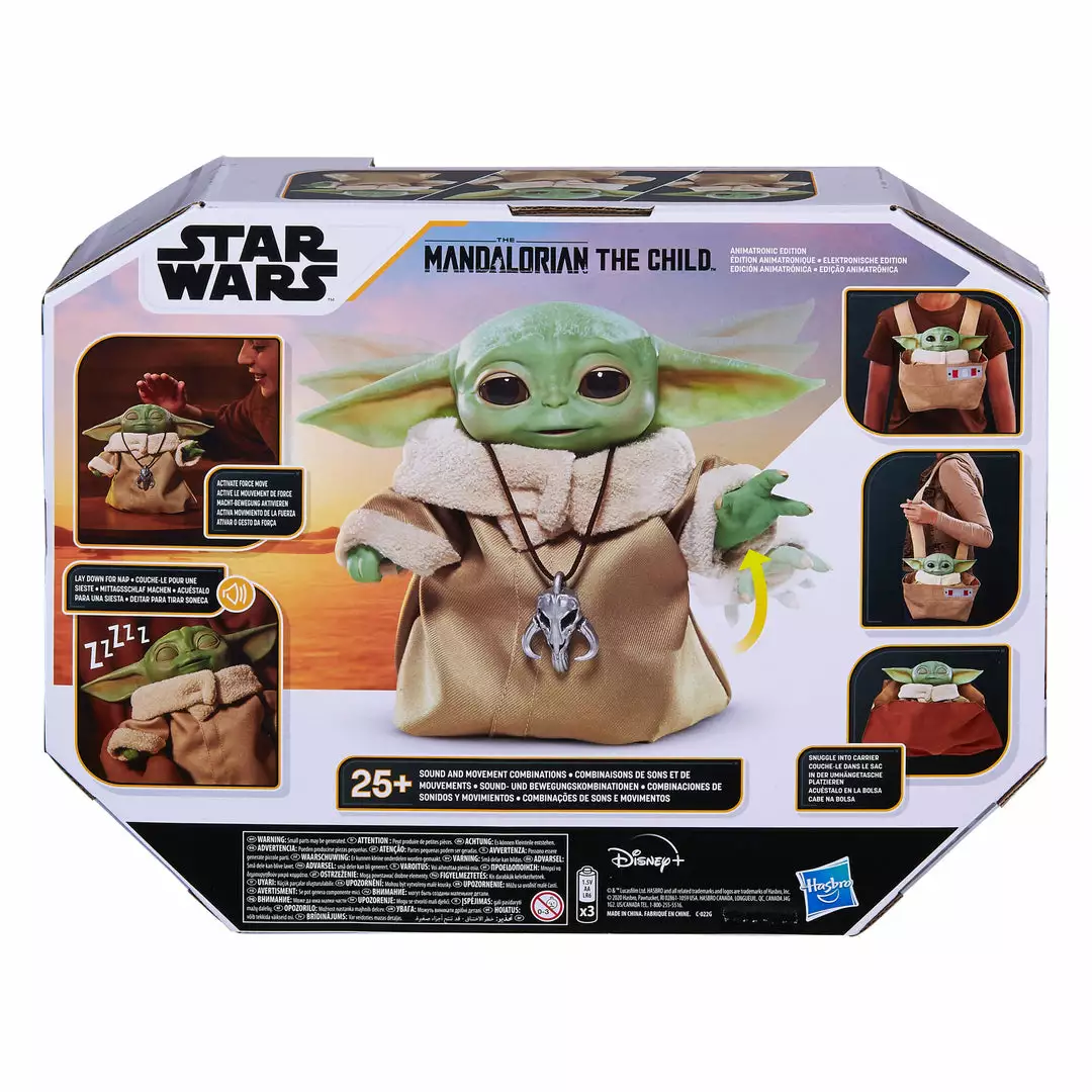 - Touch the top of The Child Animatronic Edition’s head to activate sound effects inspired by The Mandalorian, including happy and excited, giggles and babbles, tired and sleeping, and Force effects sounds