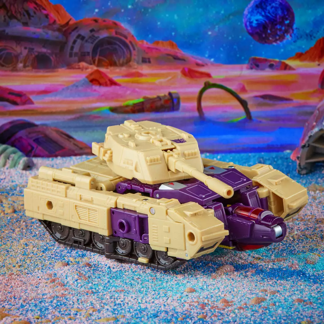 Harness the power of Energon with the Transformers Legacy Series Leader Blitzwing Triple Changer robot toy! Blitzwing terrorizes his opponents by switching between his three modes in battle, laughing all the while.