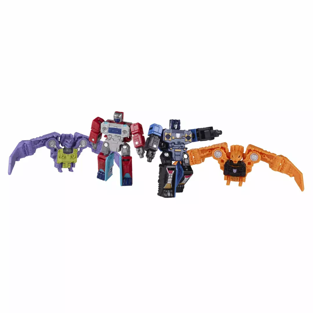 This special edition Generations Selects WFC-GS10 Soundwave Spy Patrol (3rd Unit) 4-Pack is inspired by the G1 mini-cassettes. Decepticon Rumble, Decepticon Wingthing, Decepticon Skar and Autobot Knok alt modes fit inside the chests of WFC-S25 Soundwave and WFC-S55 Soundblaster figures (each sold separately, subject to availability).