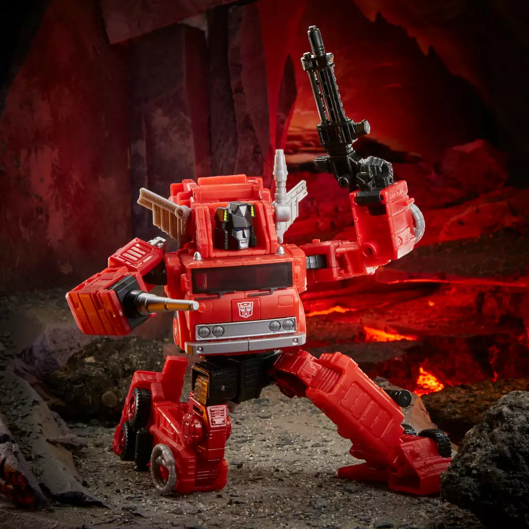 In the heat of things, Inferno stays cool under pressure. This G1-inspired toy converts into firetruck mode in 17 steps and comes with classic extinguisher blaster accessory. Features extendable ladder that can be ratcheted to different angles.