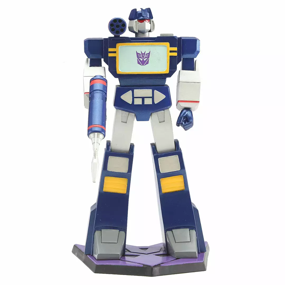 The Soundwave statue stands over 8.5” tall and is inspired by his appearance in the classic Transformers animated series. Featuring a metallic paint application and brandishing his signature Concussion Blaster, this Soundwave statue is a must have for any Transformers collector!